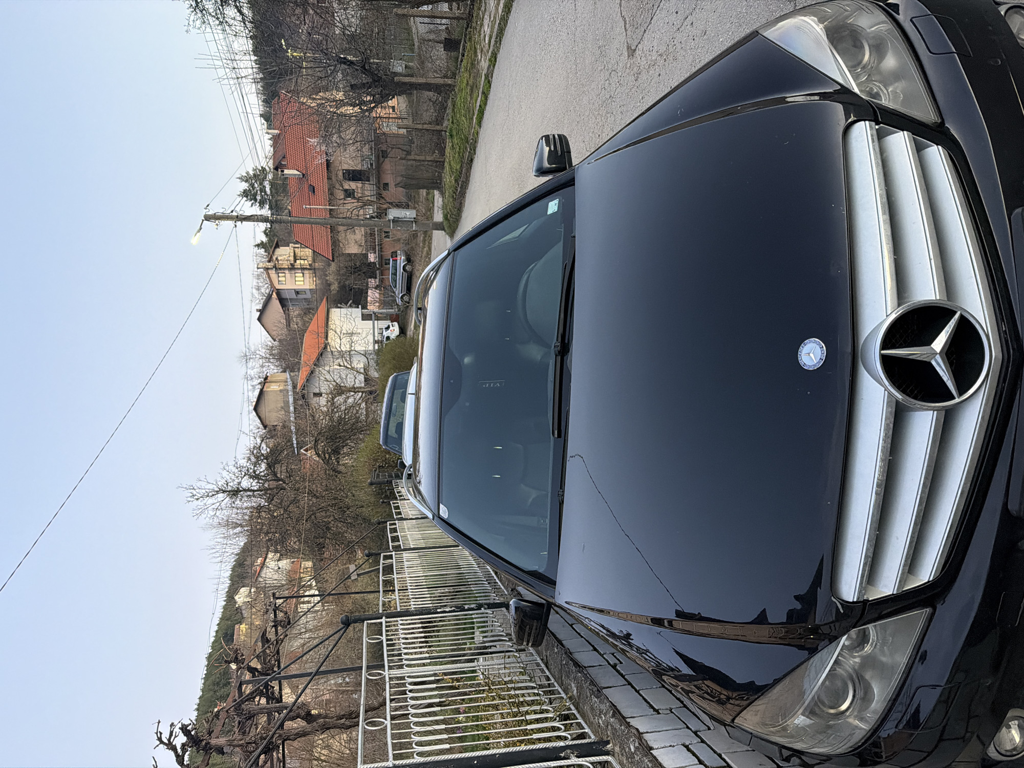 front of a black Mercedes-Benz car parked on a street in Rudartsi, Bulgaria
