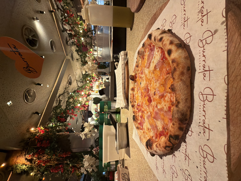- "This image depicts a prepared pizza served on a wooden board atop branded paper in an Italian restaurant identified as Burrata Italiana, located in Sofia, Bulgaria" by FM-Qv1LN2, licensed under CC BY 4.0