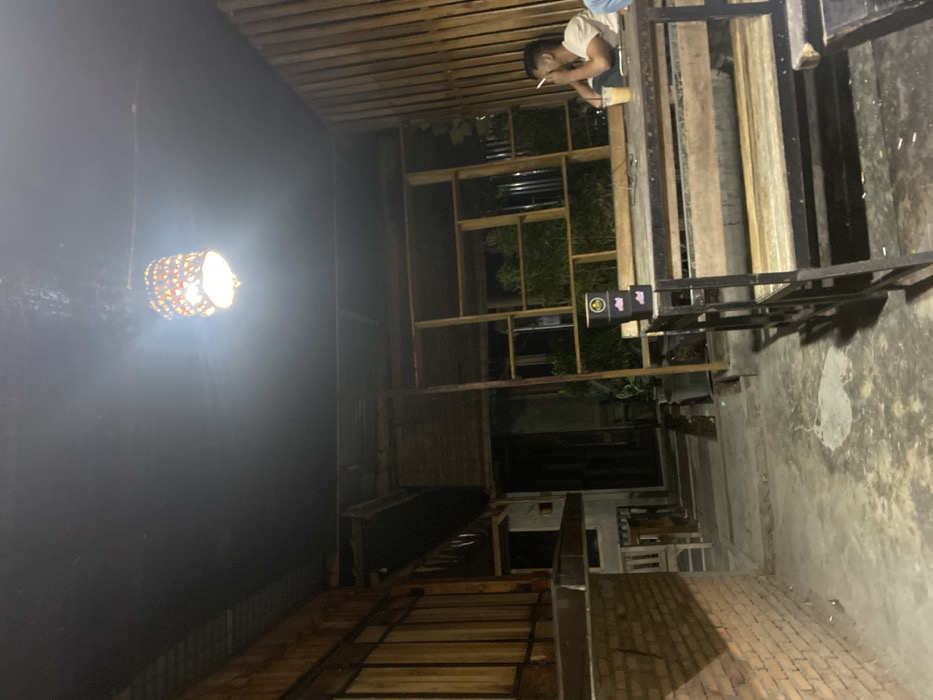 The image displays a nighttime scene within a semi-outdoor establishment in Seuneubok Teungoh, Indonesia