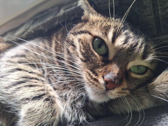 - "The scene depicts an adult domestic short-haired tabby cat within an indoor domestic setting in Stara Zagora, Bulgaria" by FM-EyRdI3, licensed under CC BY 4.0