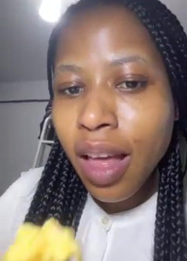 A woman with dark skin and braided hair eats from a spoon