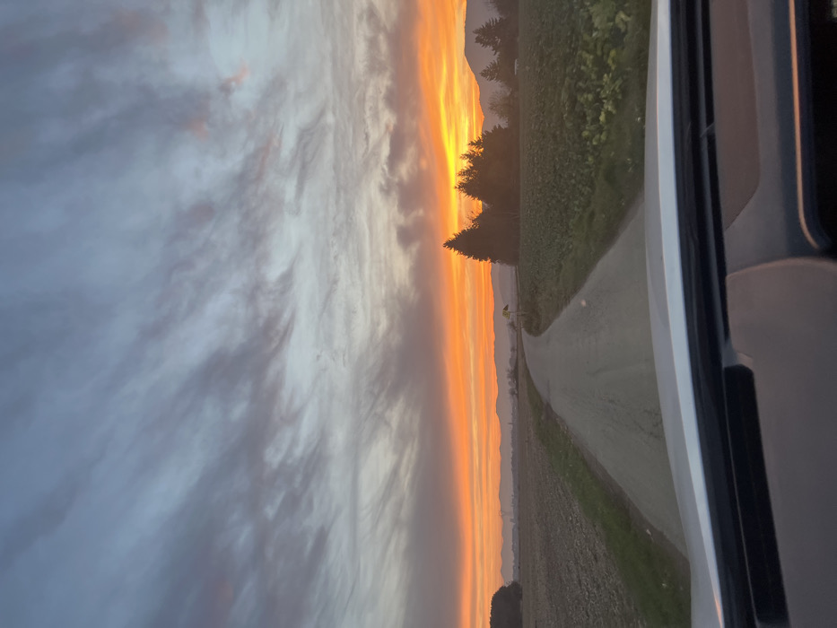 - "The image displays a rural landscape at either sunrise or sunset, viewed from within a vehicle" by FM-eWTi73, licensed under CC BY 4.0