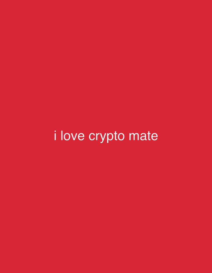 - "The image contains a solid red background with the text "i love crypto mate" in white centered on the image" by FM-nIs883, licensed under CC BY 4.0