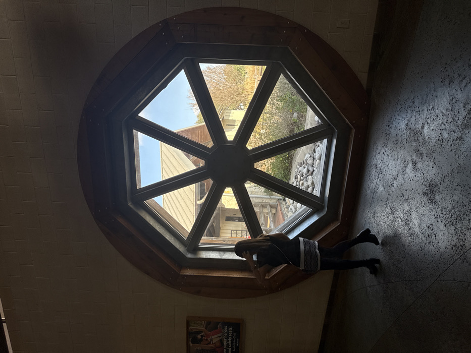 - "From a low angle, an octagonal window frames a view of building exteriors and landscaping" by FM-avfjN2, licensed under CC BY 4.0