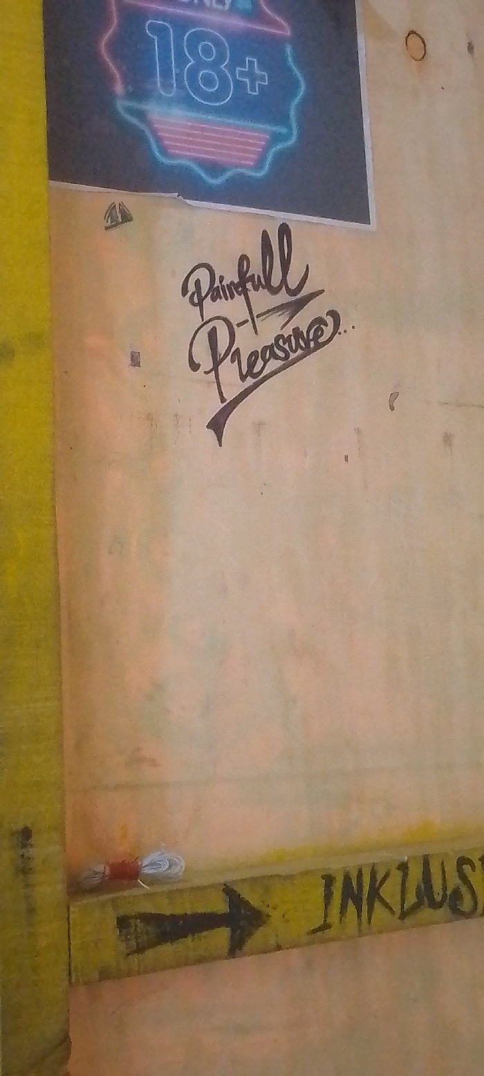 - "A wall features an "18+" neon sign above the words "Painfull Pleasure" written in cursive" by FM-IqF5p1, licensed under CC BY 4.0