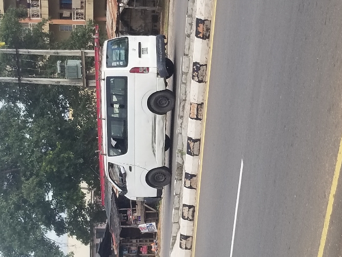 - "A white Toyota Hiace van, equipped with a red roof rack carrying elongated red objects resembling ladders, travels on a paved asphalt road in Adankolo, Nigeria" by FM-90JTn2, licensed under CC BY 4.0
