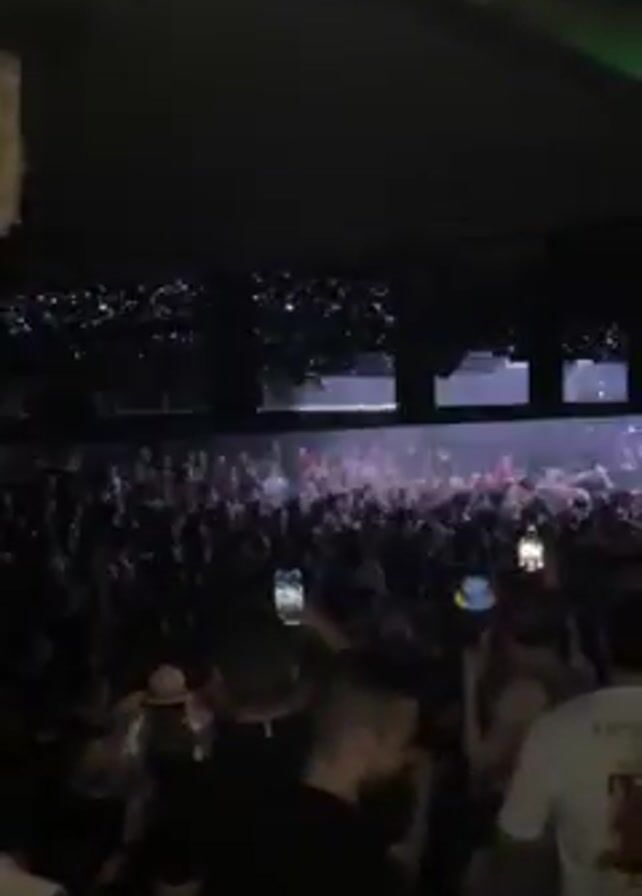 The video captures a crowd of people dancing at a nightclub or concert venue