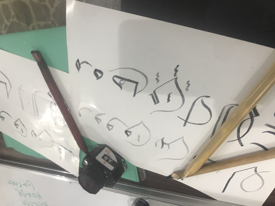 - "The image depicts an overhead view of calligraphy practice materials laid out on a flat surface in Al-Qanawat Municipality, Syria" by FM-dmASt1, licensed under CC BY 4.0