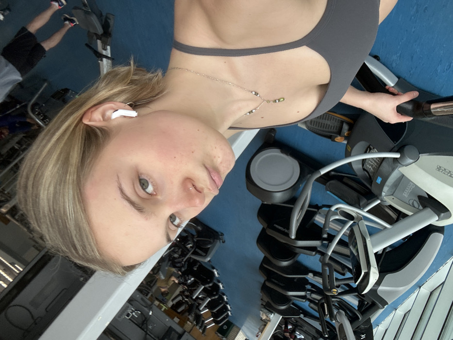A young adult female is pictured taking a selfie inside an indoor gym facility in Vancouver, Canada