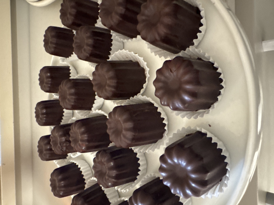 - "A high-angle, close-up view depicts approximately two dozen dark brown, fluted, cylindrical confections arranged on a white, round plate" by FM-JSAz93, licensed under CC BY 4.0