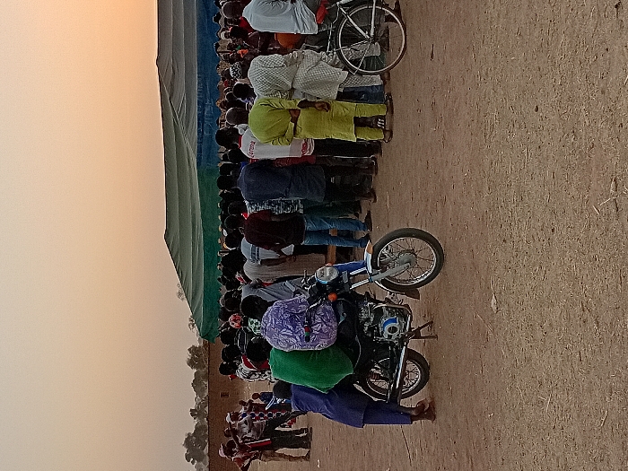 This image depicts an outdoor gathering at dusk or dawn in Nata-Ala, Nigeria