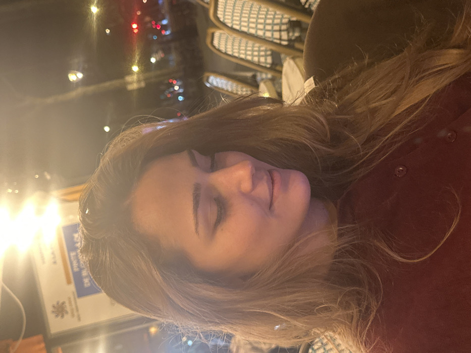A medium-shot image captures a female individual at night, likely on a cafe terrace in Paris, France