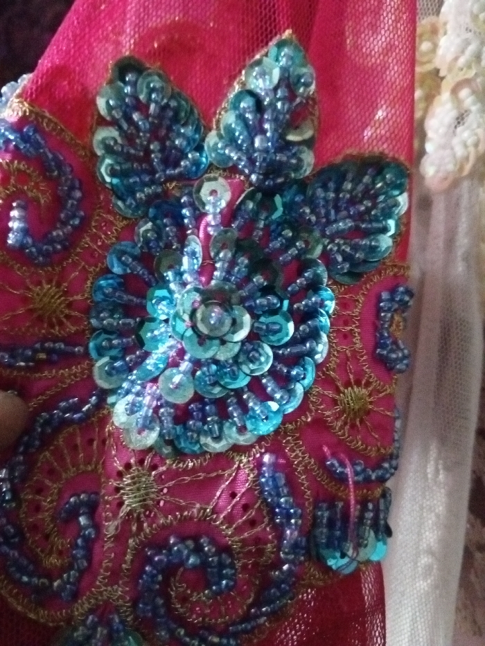 - "The image displays a close-up, angled view of an intricately embellished fabric" by FM-lzGPu1, licensed under CC BY 4.0