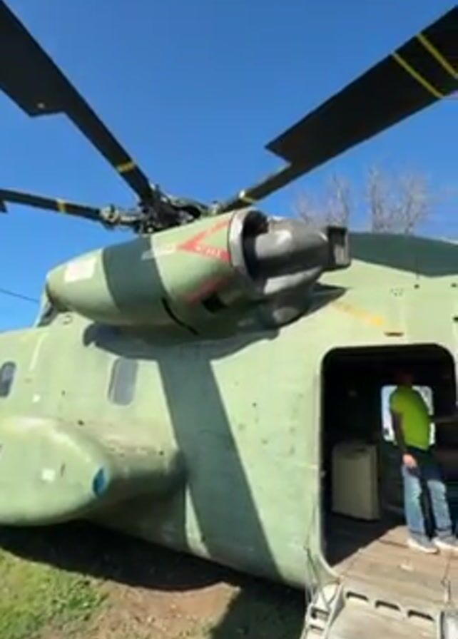 - "large, green military helicopter on a grassy area under a clear blue sky" by FM-avfjN2, licensed under CC BY 4.0