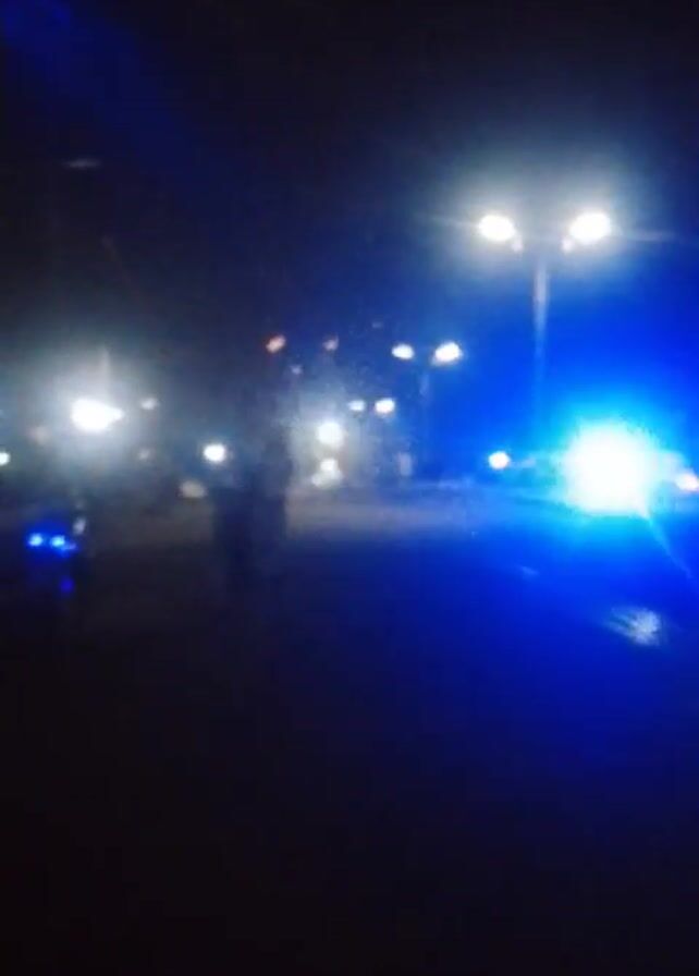 The video depicts a street at night, lit by streetlights and car headlights