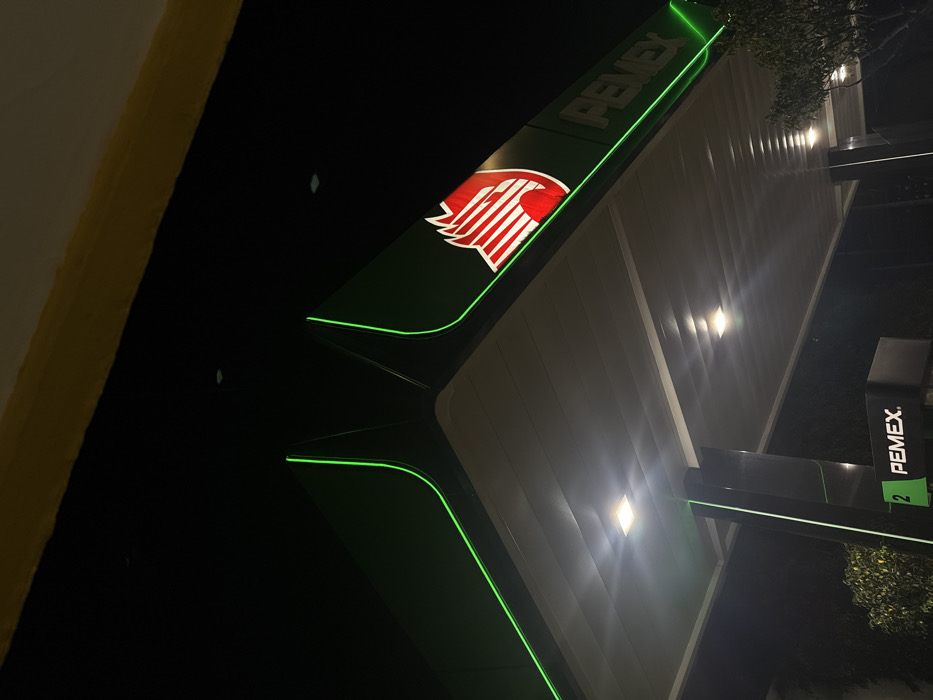 - "A Pemex gas station at night showcases its illuminated logo, featuring a stylized eagle head in red and white" by FM-x6Qwo1, licensed under CC BY 4.0
