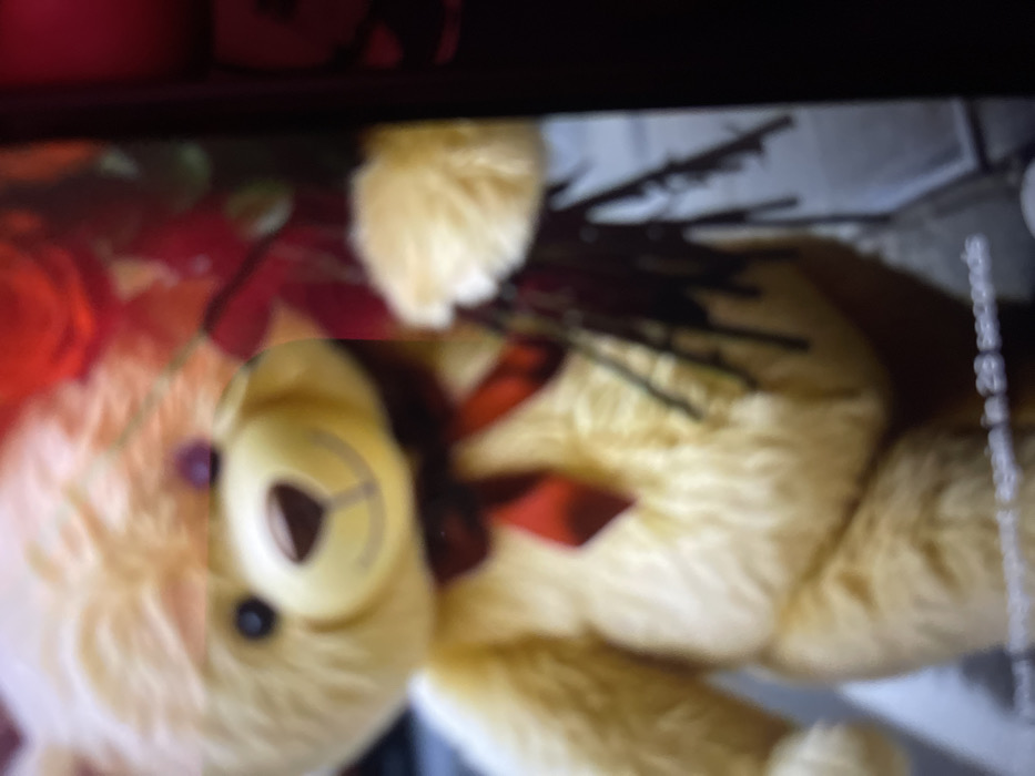 - "The image displays a severely blurry photograph of a screen, likely a mobile device, presenting a light yellow or cream-colored plush teddy bear as its primary subject" by FM-ctaQx2, licensed under CC BY 4.0