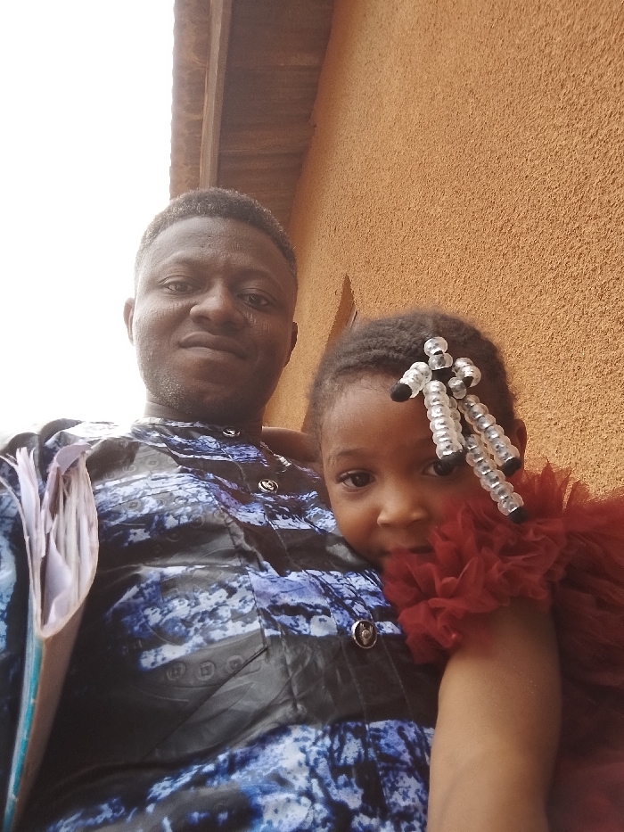 The image displays an adult male and a young female child in the City of Television, Nigeria