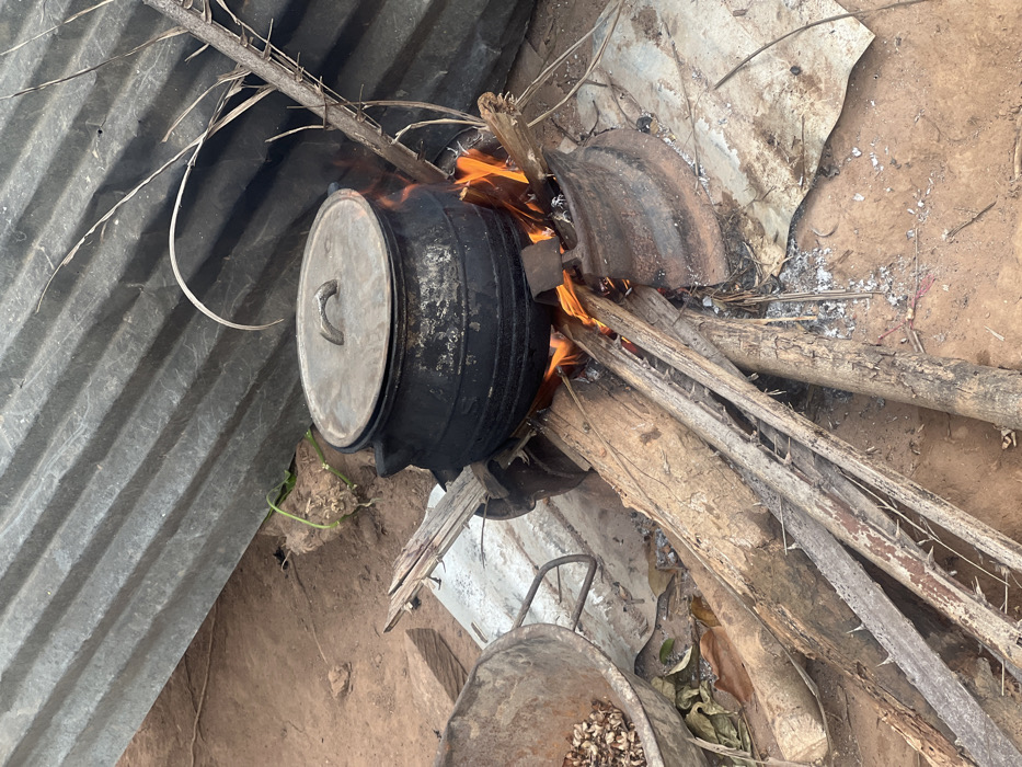 - "An outdoor cooking scene in Woadze, Ghana, features a large, black, lidded cast-iron pot actively heating over an open wood fire" by FM-6dzJp2, licensed under CC BY 4.0