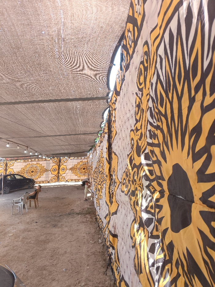 This image captures a temporary outdoor structure located in Al-Kum, Palestinian Territory