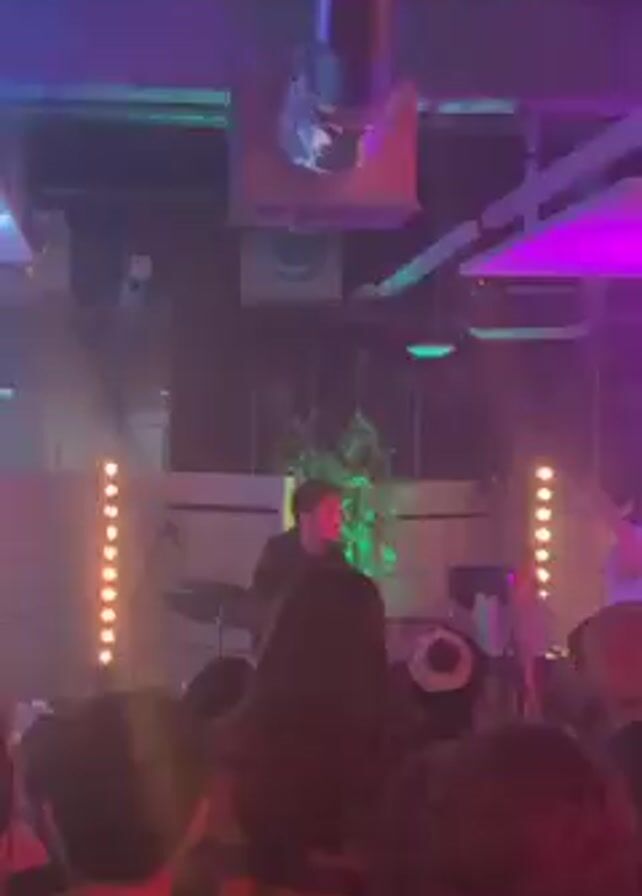 band performing live on stage in a dimly lit venue