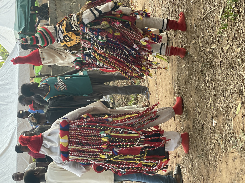 - "The image displays an outdoor scene in Umueze, Nigeria, featuring two elaborately costumed figures observed by multiple unmasked individuals" by FM-zKIcH2, licensed under CC BY 4.0