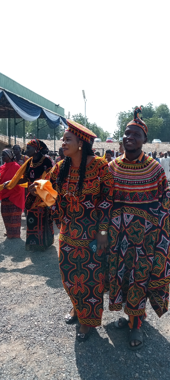 The image captures an outdoor gathering in Jimeta, Nigeria, under bright daylight conditions