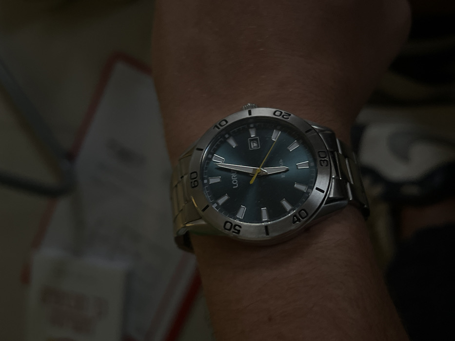 In Tel Mond, Israel, a close-up image depicts a human wrist wearing a Lorus wristwatch