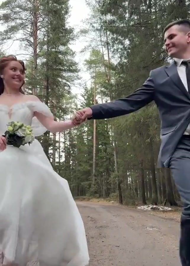 - "A bride and groom are running down a dirt road lined with tall, thin trees" by FM-f1Jym1, licensed under CC BY 4.0