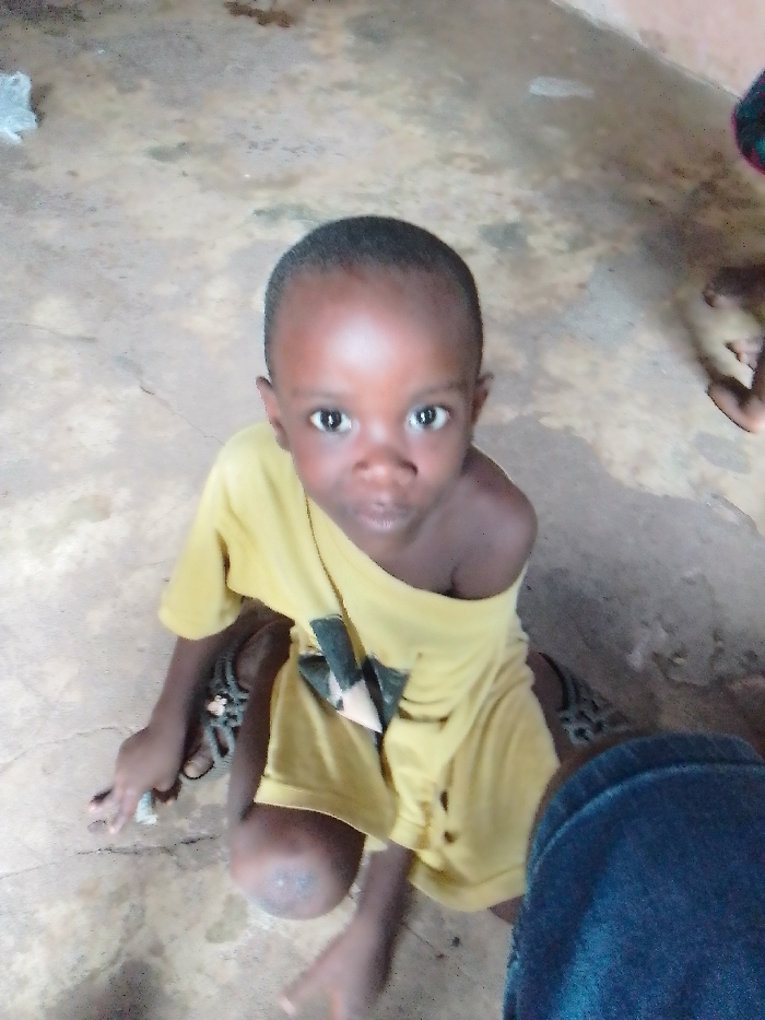 - "A young child, estimated to be between two and four years old, with dark skin and short dark hair, is depicted kneeling or squatting on a light-colored, worn concrete or cement floor in Isingwu, Nigeria" by FM-tDxVO2, licensed under CC BY 4.0