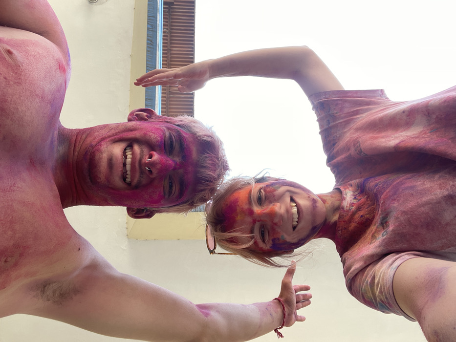 - "A close-up, low-angle photograph taken in Rishikesh, India, depicts two individuals covered in brightly colored powders, characteristic of the Holi festival" by FM-waRT52, licensed under CC BY 4.0