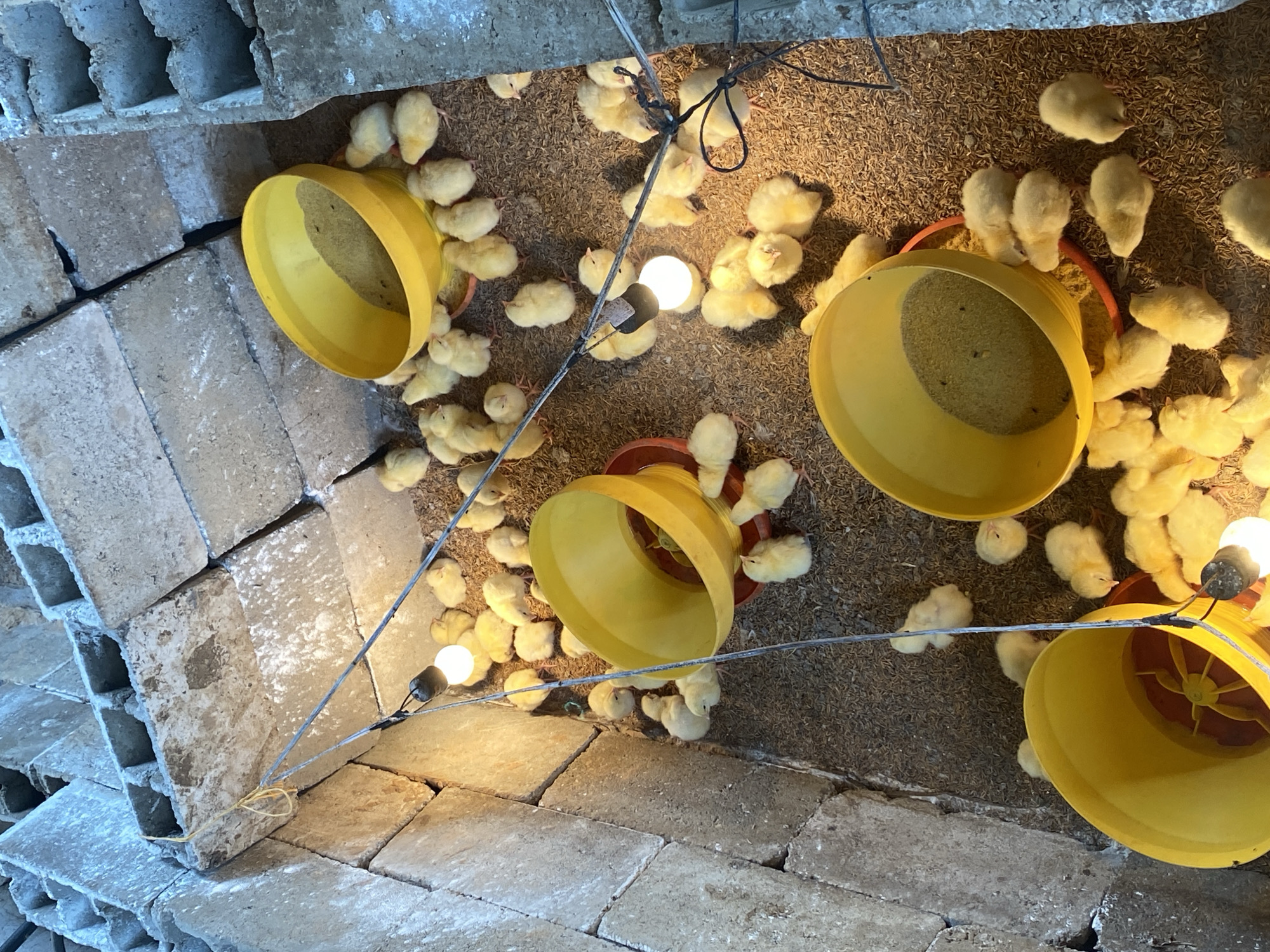 group of yellow chicks in what appears to be a chicken coop in Tinaquillo, Venezuela