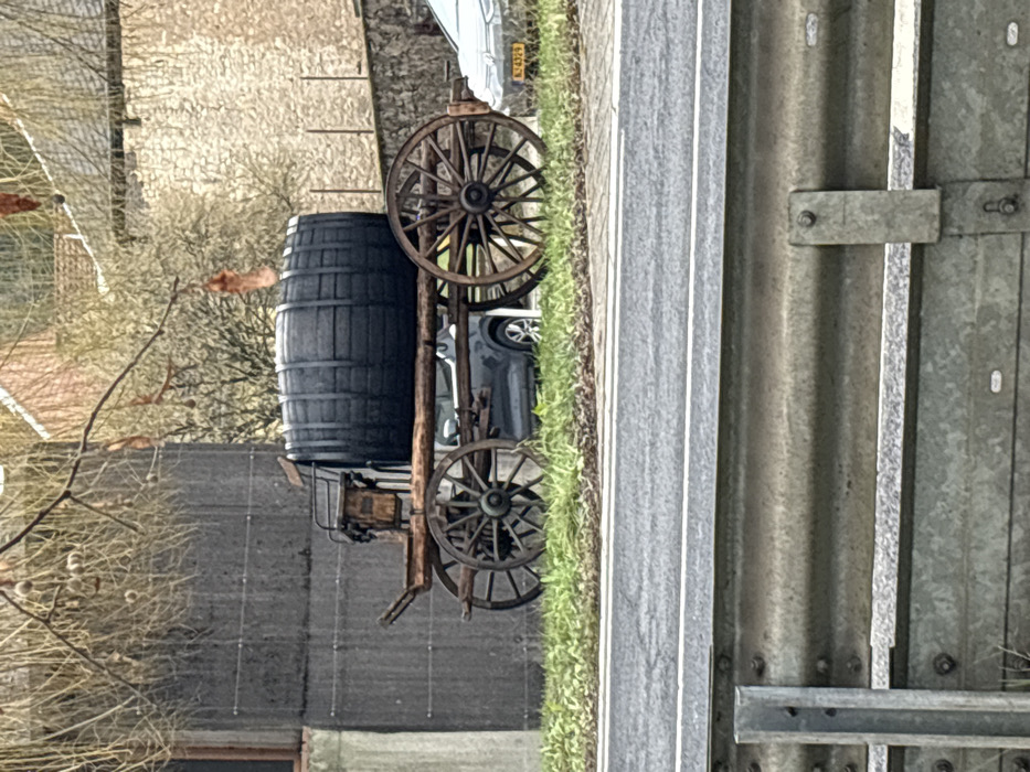 - "An antique-style wooden cart, featuring four large wooden spoked wheels, is positioned on a patch of grass beside an asphalt road in Bech-Kleinmacher, Luxembourg" by FM-ErVNw2, licensed under CC BY 4.0