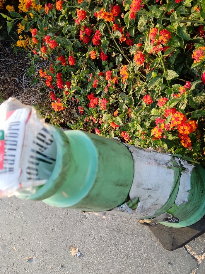 - "The image depicts an outdoor scene in Monterey Park, United States of America, featuring a damaged man-made object against a backdrop of flowering vegetation and a paved surface" by FM-7Rq8C3, licensed under CC BY 4.0