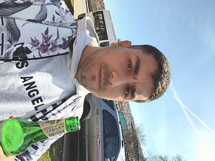 The image depicts a male individual captured outdoors in the city of Sredets, Bulgaria, on a clear, sunny day