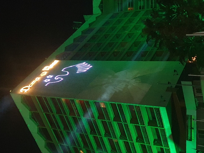 - "A tall building is illuminated in green at night" by FM-LJRLv2, licensed under CC BY 4.0