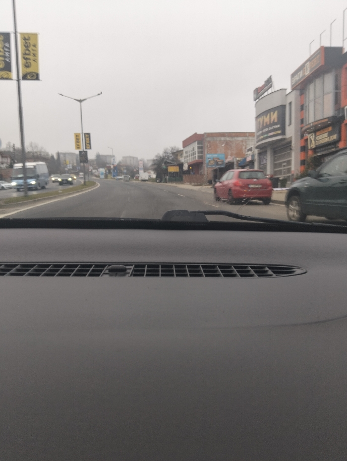 - "The image displays an urban roadway scene in Kardzhali, Bulgaria, under an overcast sky with a wet road surface, observed from the interior of a vehicle" by FM-jFSwk1, licensed under CC BY 4.0