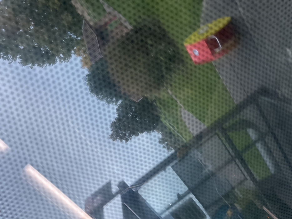 - "The image depicts an exterior scene viewed through a translucent, perforated surface, likely a window or screen, creating a prominent dot pattern across the entire frame" by FM-vVQbp1, licensed under CC BY 4.0