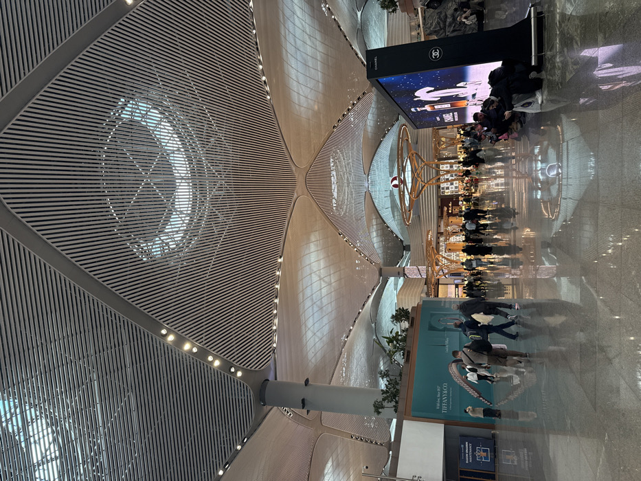The image depicts the interior of Istanbul Airport (IST), located in Arnavutköy, Istanbul, Turkey