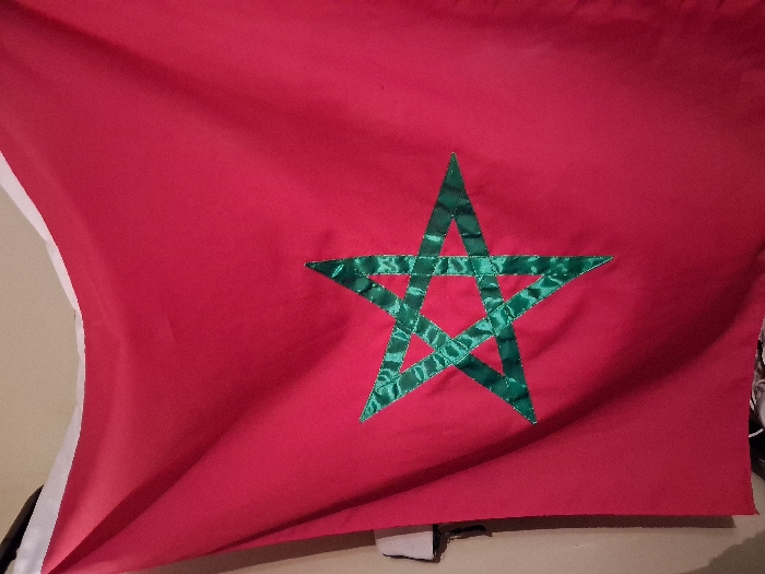 A photograph presents the flag of Morocco