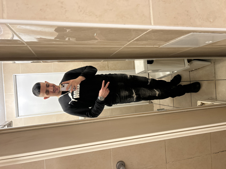 - "A man in a black Puma sweatshirt and black jeans poses in a bathroom mirror" by FM-LY5HE3, licensed under CC BY 4.0