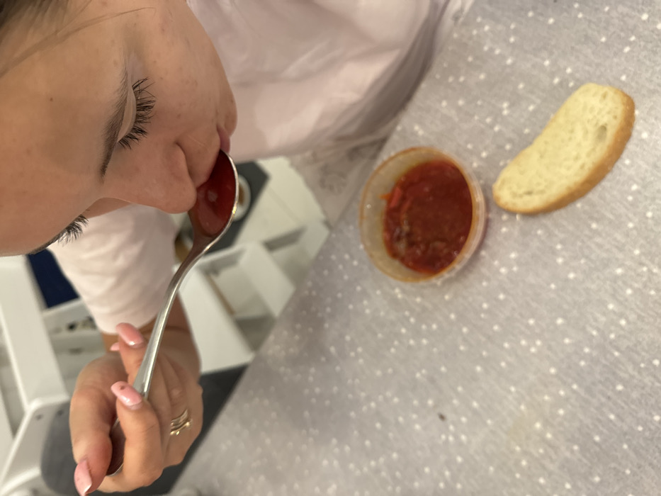 - "A person is shown eating with a spoon, likely tomato sauce from a plastic container next to a slice of bread" by FM-j2hvk2, licensed under CC BY 4.0