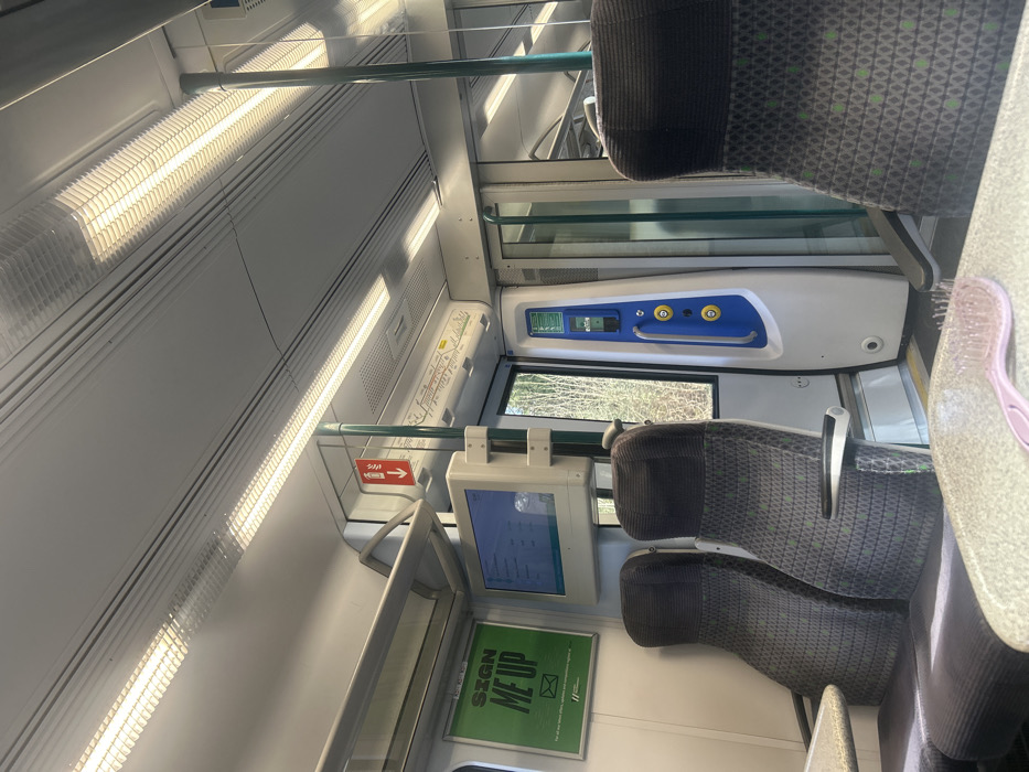 - "The image depicts the interior of a London Overground Class 710 "Ventura" train carriage, likely operating on the Watford DC Line in or around Watford, United Kingdom" by FM-PtehC2, licensed under CC BY 4.0