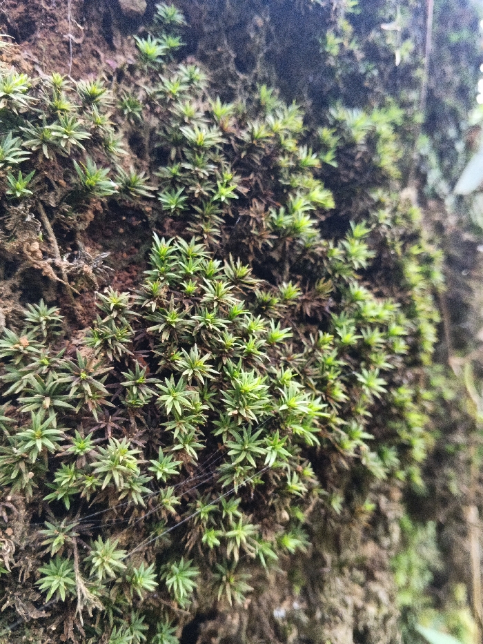 - "The image depicts a detailed, close-up view of a natural surface densely covered with small green plants, likely bryophytes or mosses, located in Pinnwe, Myanmar (Burma)" by FM-DN4253, licensed under CC BY 4.0