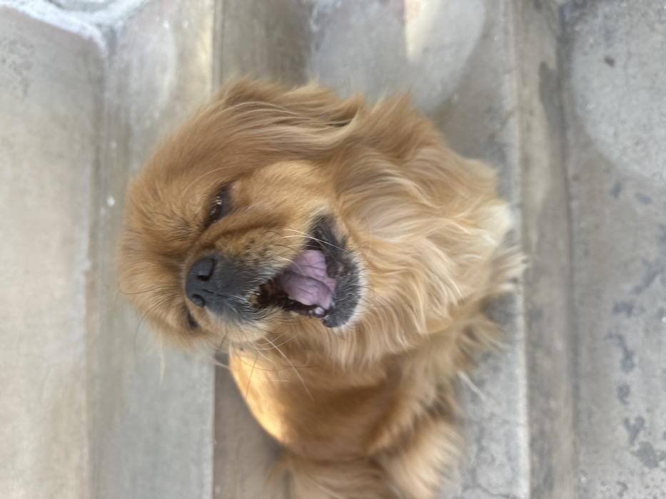 - "An outdoor scene in Semchinovo, Bulgaria, features a single long-haired small dog, with reddish-brown and golden fur, situated on light-grey concrete steps" by FM-RIcHm1, licensed under CC BY 4.0