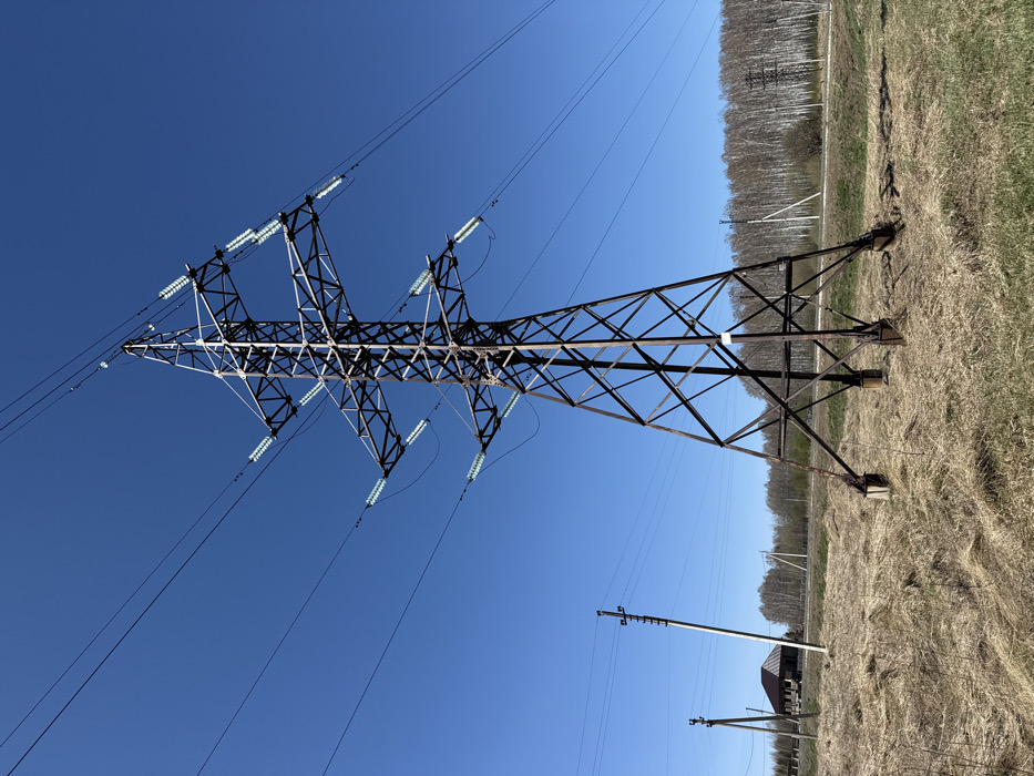 - "A large, metal electrical tower, supporting multiple power lines, stands in a field of dry grass" by FM-5viFC3, licensed under CC BY 4.0