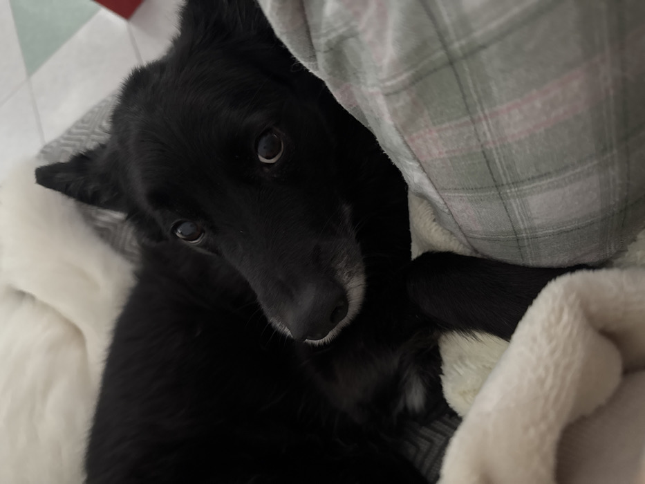 - "A black-furred dog is depicted lying down indoors in Polje, Montenegro" by FM-vBqzm1, licensed under CC BY 4.0