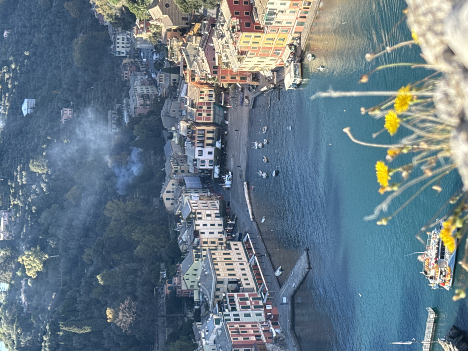 - "An elevated, wide-angle view captures the harbor and town of Portofino, Italy, framed by steep, tree-covered hillsides under clear skies" by FM-yjK1X2, licensed under CC BY 4.0