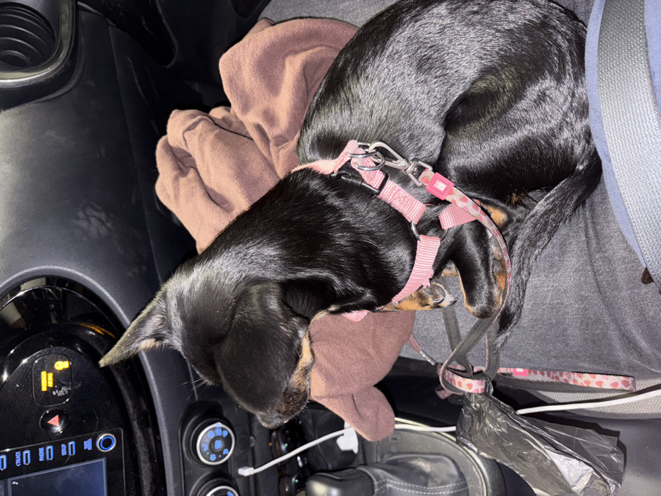 - "The image displays a small, black and tan dog resting on an individual's lap inside a vehicle in Kfar Saba, Israel" by FM-0RDsi1, licensed under CC BY 4.0