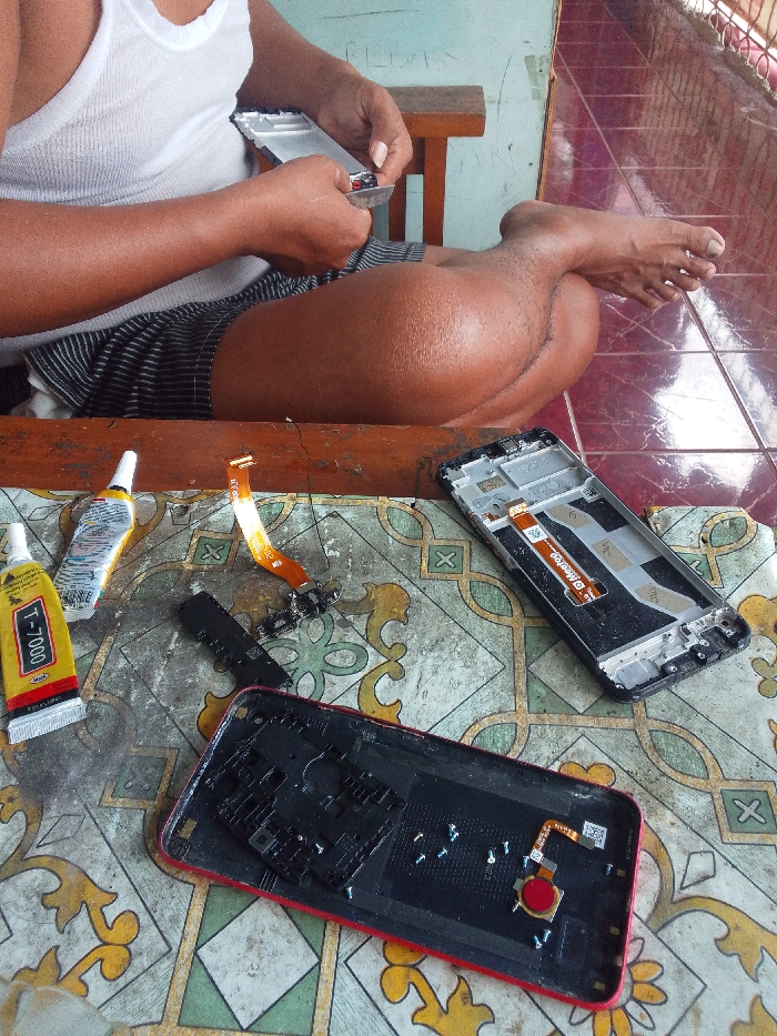 - "The image captures a detailed view of a mobile phone repair activity undertaken by an adult male in an indoor setting in Bogor, Indonesia" by FM-3DGA03, licensed under CC BY 4.0